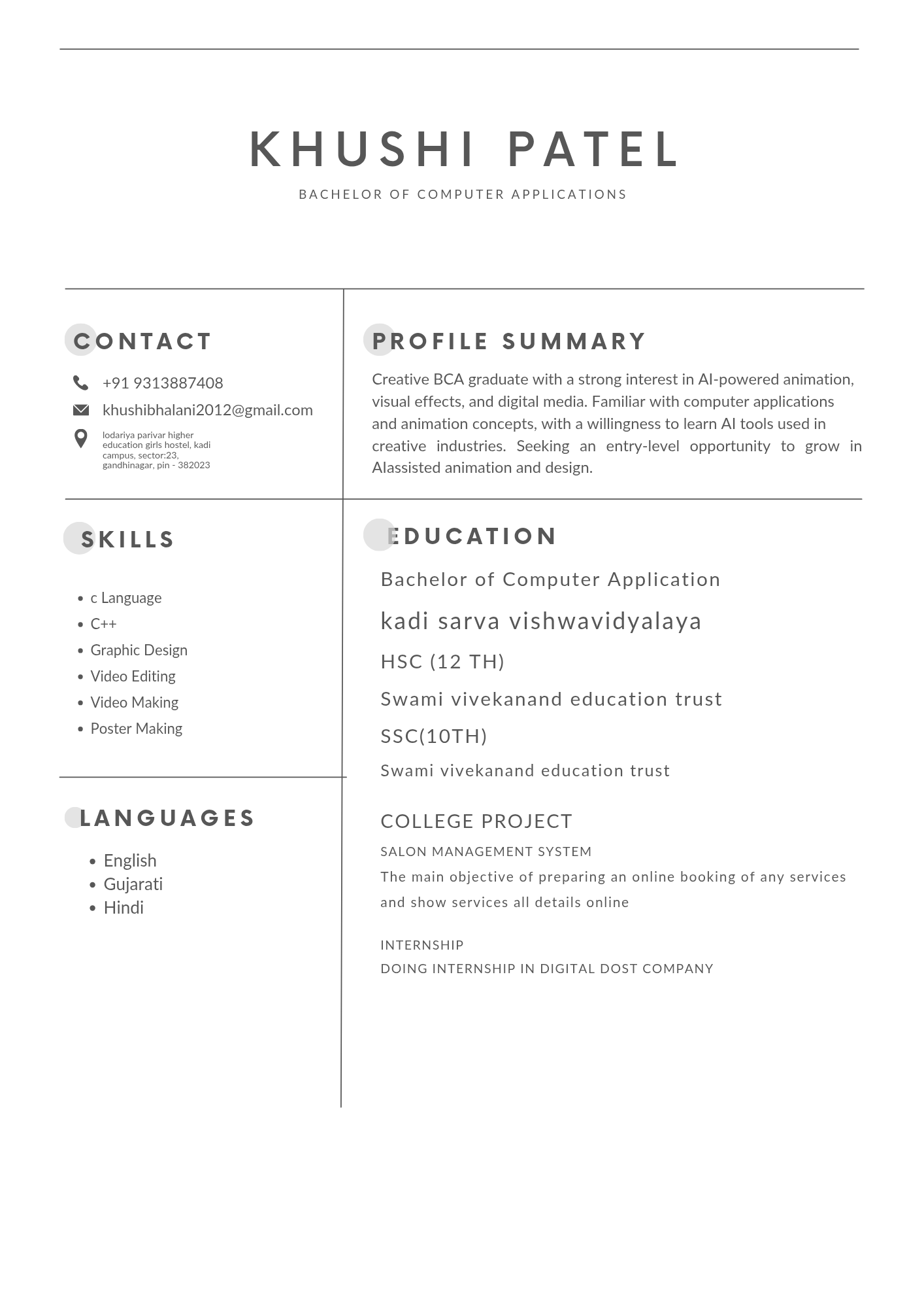 Creative BCA graduate with a strong interest in AI-powered animation,